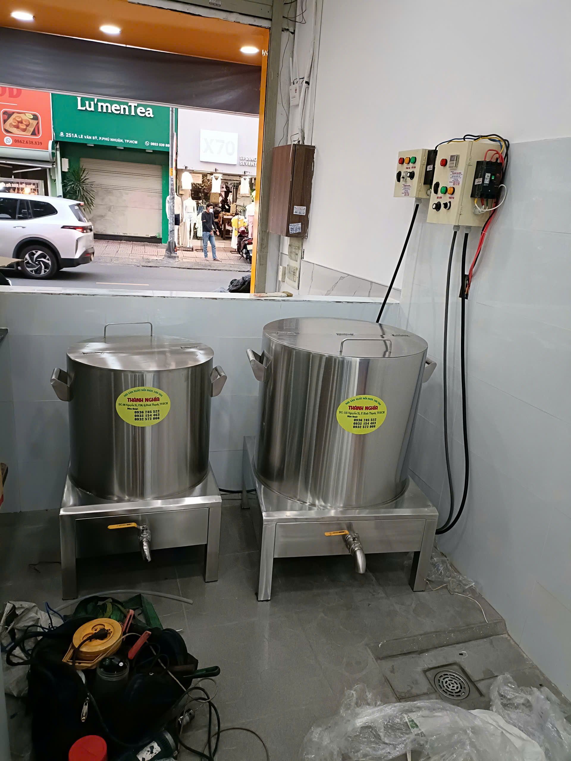 - Nồi Điện Hầm Xương 200 Lít Hiện Nay Được Sử Dụng Rất Phổ Biến Ưa Chuộng Trong Công Việc Phục Vụ Các Quán Ăn Nhà Hàng Nấu Hầm Nước Lèo Thơm Ngon . Còn Nồi 120L Dùng Để Chiết Nước Lèo Từ Nồi Bự Sang Hâm Nóng Đun Sôi Nước Nhanh Chóng , Sử Dụng Dễ Dàng Tiện Lợi Gọn Gàng . Thay Thế Cho Những Nồi Nhôm Và Cách Nấu Truyền Thống Như : Than Đá , Bếp Gas , ... Được Làm Hoàn Toàn Inox 304 100% An Toàn Đảm Bảo Vệ Sinh Thực Phẩm Khi Nấu .Bên Trong Thân Nồi Sử Dụng Foam Cách Nhiệt . Điều Chỉnh Nhiệt Độ Theo Yêu Thích , Tủ Điện Rời Theo Mỗi Nồi Đun Sôi Một Cách Nhanh Chóng Tiện Lợi , Sử Dụng Gọn Gàng . Bảo Hành Nguồn Điện 1 Năm . Nhận Đặt Làm Nồi Kích Thước Theo Yêu Cầu Của Quý Khách SDT : 0932572066 - 0936785522 ( Anh Nghĩa ) 0932154463 ( Chị Lệ ) 0706787636 ( Em Quân ) ( Đều Có ZáLô ) Bao Lắp Đặt Vận Chuyển Trong TPHCM , Long An , Bến Tre , Đông Tháp Cho Cô Chú Anh Chị Nào Ở Xa Em Quân . Địa Chỉ Cửa Hàng 1 : 115 Nguyễn Xí , Phường 26 , Quận Bình Thạnh. Địa Chỉ Cửa Hàng 2 : Châu Thành , Tiền Giang ( Ngay Cầu Bến Chùa ). Địa Chỉ Xưởng : 193 Quốc Lộ 13 , P Hiệp Bình Chánh , Thủ Đức .