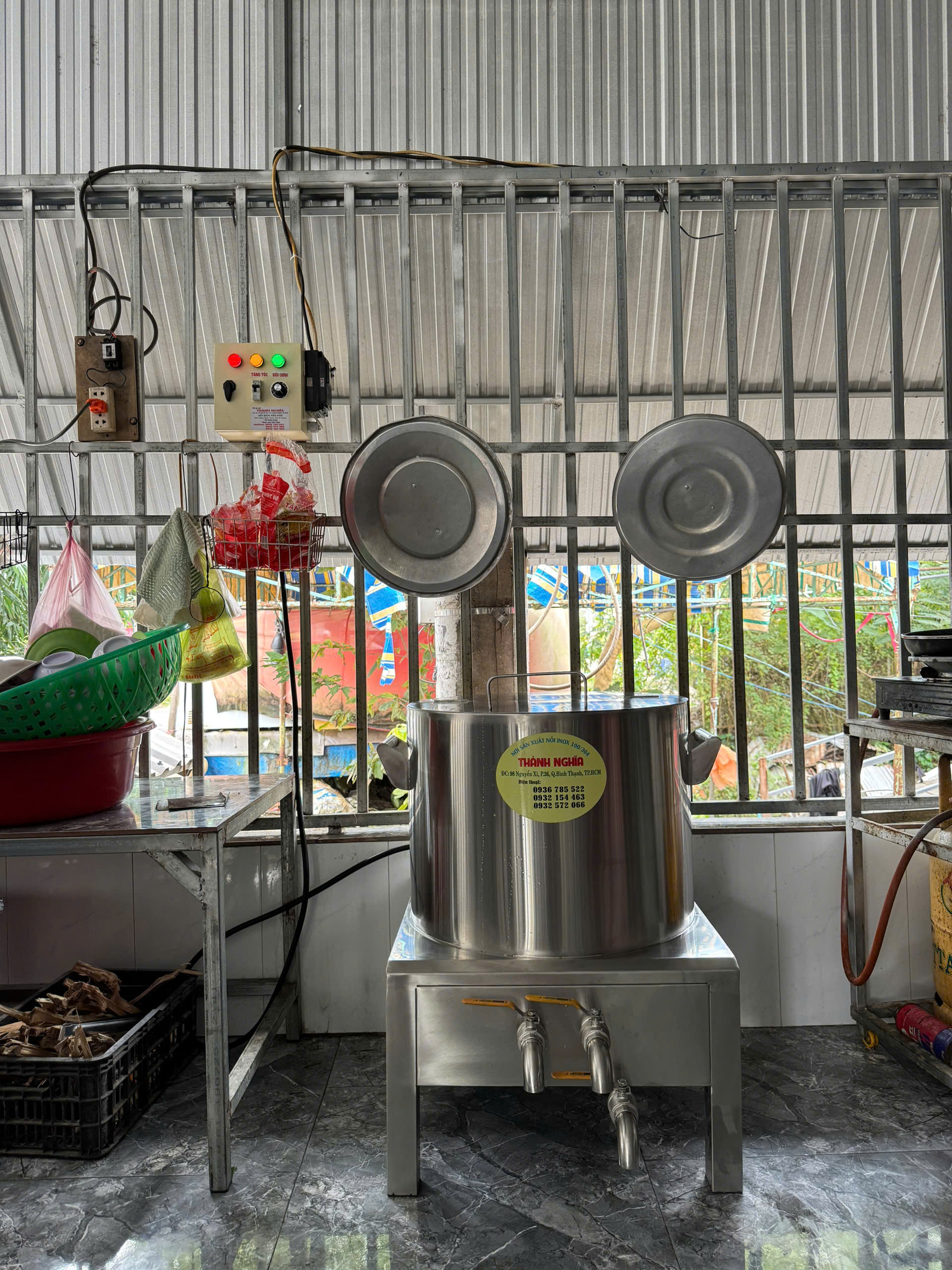 - Mẫu Nồi Điện Ngăn 3 Hộc 120L 3 Lớp Sẽ Có 2 Hộc Nước Lèo Và 1 Hộc Trụng Bánh Trần Hoặc Rau Giá . Sẽ Rất Tiện Lợi Khi Nấu Được Nhiều Nước Lèo Trong Cùng Một Lần Nấu . Dùng Ninh Xương Hâm Nóng Nước Lèo Nấu Thơm Ngon Để Nấu Những Món Hủ Tiếu , Phở , Bún Mọc , ... Đun Sôi Một Cách Nhanh Chóng Tiện Lợi , Sử Dụng Gọn Gàng . Tiết Kiệm Thời Gian Nấu , Thay Thế Cho Những Nồi Nhôm Và Cách Nấu Truyền Thống : Than Đá , Bếp Gas. Cấu Tạo Nồi Tất Cả Inox 304 Chống Rỉ Sét , Đảm Bảo An Toàn Thực Phẩm Khi Nấu . Bên Trong Thân Nồi Sử Dụng Foam Cách Nhiệt . Điều Chỉnh Nhiệt Độ Theo Yêu Thích , Tủ Điện Rời Theo Mỗi Nồi Đun Sôi Một Cách Nhanh Chóng Tiện Lợi , Bền Bỉ - Uy Tín - Chất Lượng Là Danh Dự Luôn Đặt Lên Hàng Đầu . Sử Dụng Điện 1 Pha 220v Bảo Hành Nguồn Điện 1 Năm . Nhận Đặt Làm Nồi Kích Thước Theo Yêu Cầu Của Quý Khách SĐT : ( 0932572066 - 0936785522 Anh Nghĩa ) ( 0932154463 Chị Lệ ) ( 0706787636 Em Quân )( Đều Có Zalo ) Địa Chỉ Cửa Hàng 1 : 115 Nguyễn Xí , Phường 26 , Quận Bình Thạnh. Địa Chỉ Cửa Hàng 2 : Châu Thành , Tiền Giang ( Ngay Cầu Bến Chùa ). Địa Chỉ Xưởng : 193 Quốc Lộ 13 , P.Hiệp Bình Chánh , Thủ Đức.