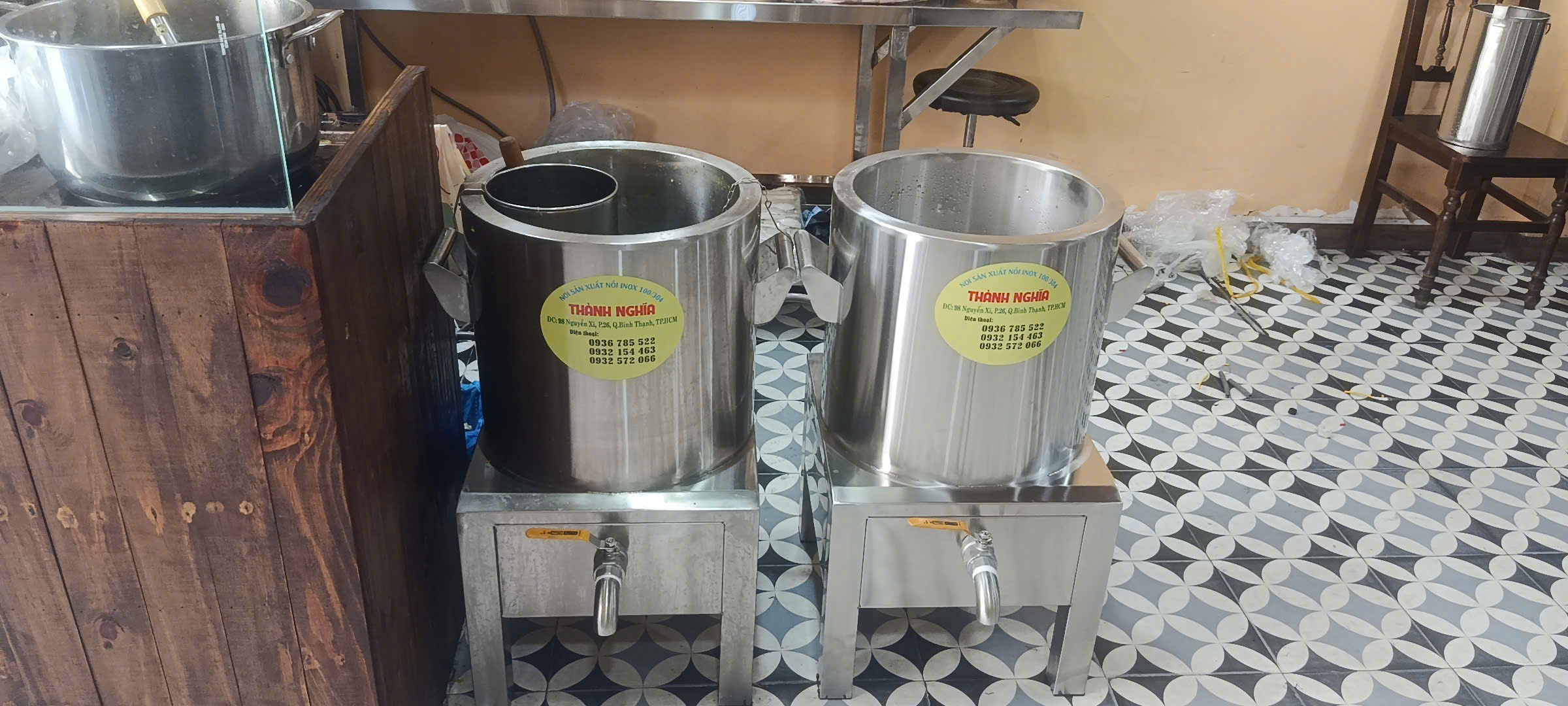 - Mẫu Nồi Điện Nấu Bún Phở 50L Rất Phổ Biến Được Sử Dụng Nhiều Hiện Nay Dành Cho Các Quán Ăn , Căn Tin , Công Ty Xí Nghiệp , Trường Học Sử Dụng Một Cách Dễ Dành Phục Vụ Nhu Cầu Nấu Mọi Món Ăn Nhanh Chóng Hơn , Gọn Gàng , Tiết Kiệm Thời Gian Nấu . Thay Thế Cho Nồi Nhôm Và Cách Nấu Nướng Truyền Thống Xưa Nay Như Than , Củi , Bếp Gas ,... Đun Sôi Một Cách Nhanh Chóng Tiện Lợi . Điều Chỉnh Nhiệt Độ Theo Yêu Thích , Tủ Điện Rời Theo Mỗi Nồi Bảo Hành Nguồn Điện 1 Năm . Chất Liệu Nồi Hoàn Toàn 100% 304 Bền Bỉ - Uy Tín - Chất Lượng Là Danh Dự Luôn Đặt Lên Hàng Đầu . Nhận Đặt Làm Nồi Kích Thước Theo Yêu Cầu Của Quý Khách SDT : 0932572066 - 0936785522 - 0932154463 - 0706787636( Đều Có ZáLô ) Địa Chỉ Cửa Hàng 1 : 115 Nguyễn Xí , Phường 26 , Quận Bình Thạnh. Địa Chỉ Cửa Hàng 2 : Châu Thành , Tiền Giang ( Ngay Cầu Bến Chùa ). Địa Chỉ Xưởng : 193 Quốc Lộ 13 , P. Hiệp Bình Chánh , Thủ Đức.